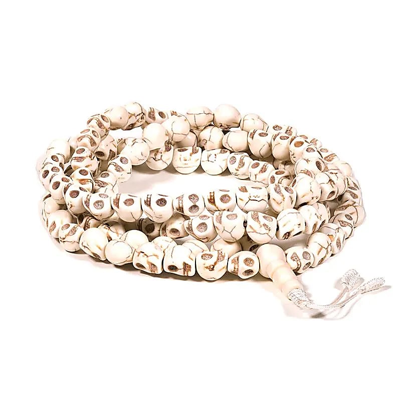 Tibeti tanítók szerint a koponya nem a halált, hanem a felébredést jelképezi. Amikor a gyakorló minden egyes szemmel mantrát recitál, emlékezteti önmagát arra, hogy az élet rövid – és a tudat megtisztítása nem halogatható. A csont mint alapanyag az elmúlás testet öltött szimbóluma: a test porrá lesz, de a tudat képes átlépni a forma világát.