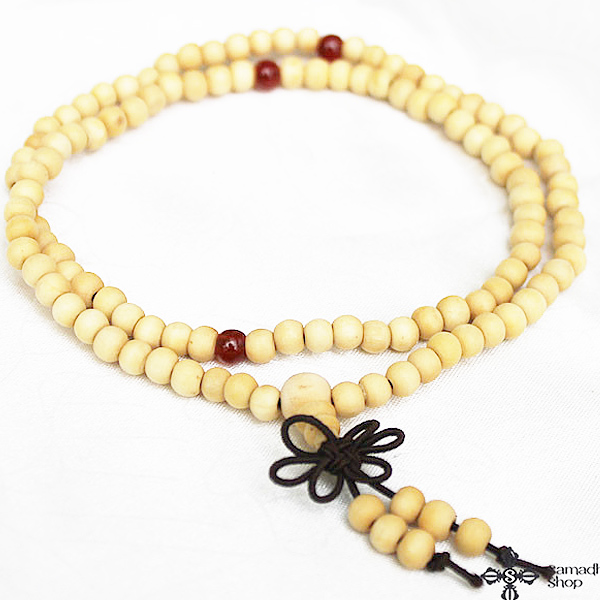 108 szemes, fából készült mala, 6 mm átmérőjű szemekkel. A mala áldott.