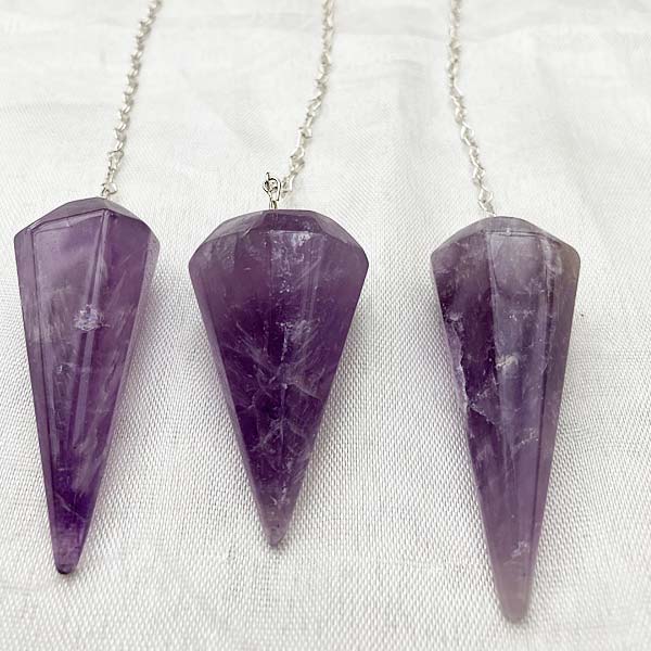 Kb. 3,5-4 cm-es ametiszt inga 13-15 centis fémláncon.