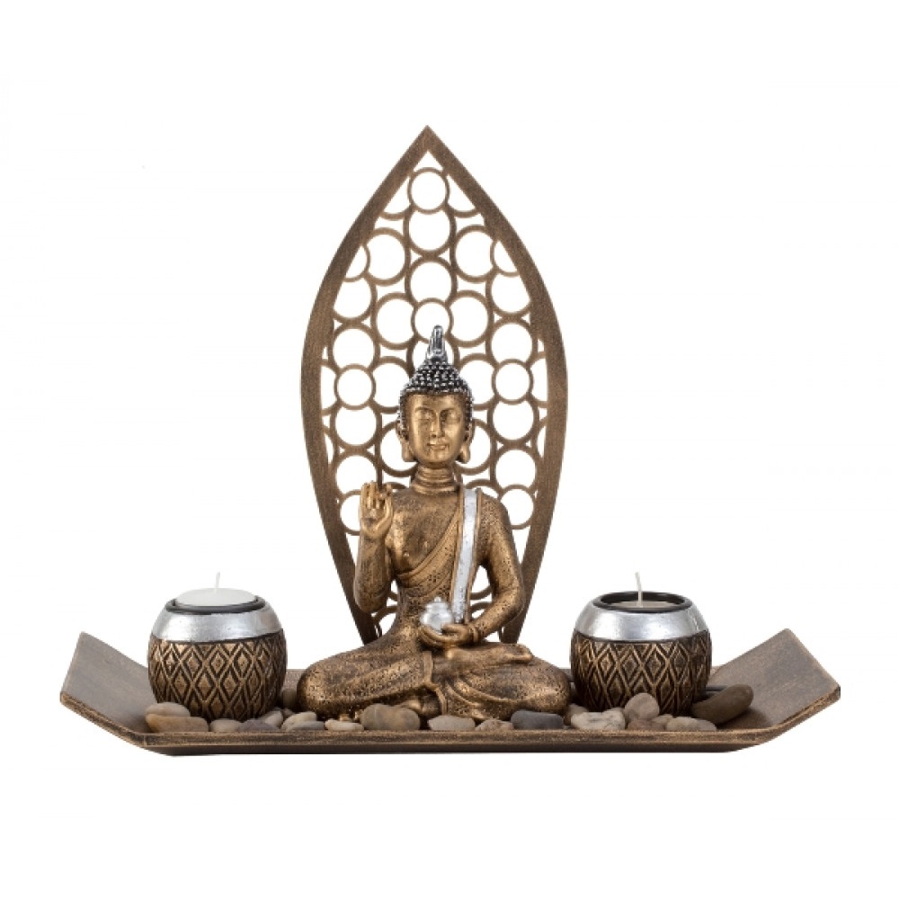 Igazán mutatós Buddha szett 2 db teamécses tartóval, hossza: 35cm. Anyaga: műgyanta.