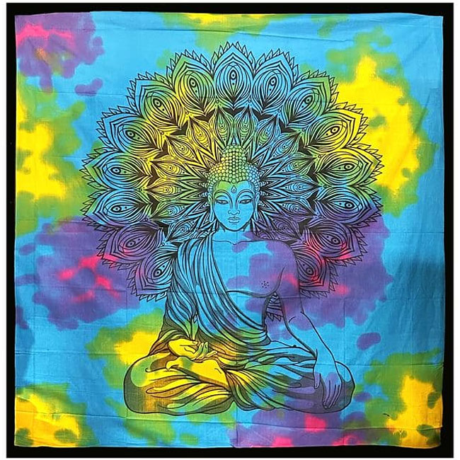 Dupla méretű Buddha alakos ágytakaró vagy faliszőnyeg.