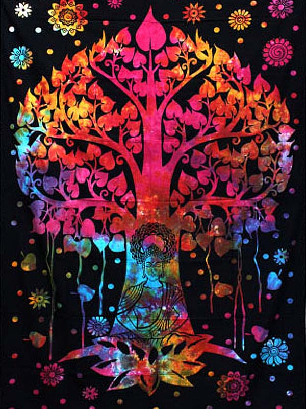Dupla méretű életfa Buddha sziluettel pamut ágytakaró