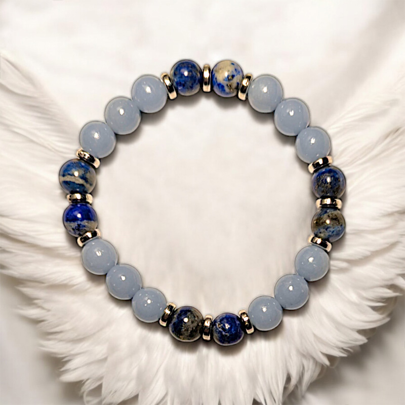 Az Égi Harmónia karkötő az angyalok érintését és a belső béke megtalálását hozza el számodra. Két különleges ásvány, az angelit és a lápisz lazuli tökéletes harmóniában egyesül ebben az ékszerben, hogy támogassa a lelki fejlődést, a kommunikációt és a belső nyugalmat.