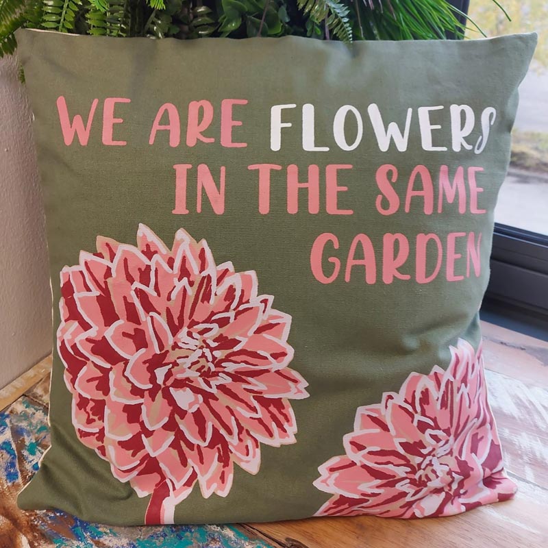 Egyek vagyunk – We are flowers in the same garden párnahuzat pamutból