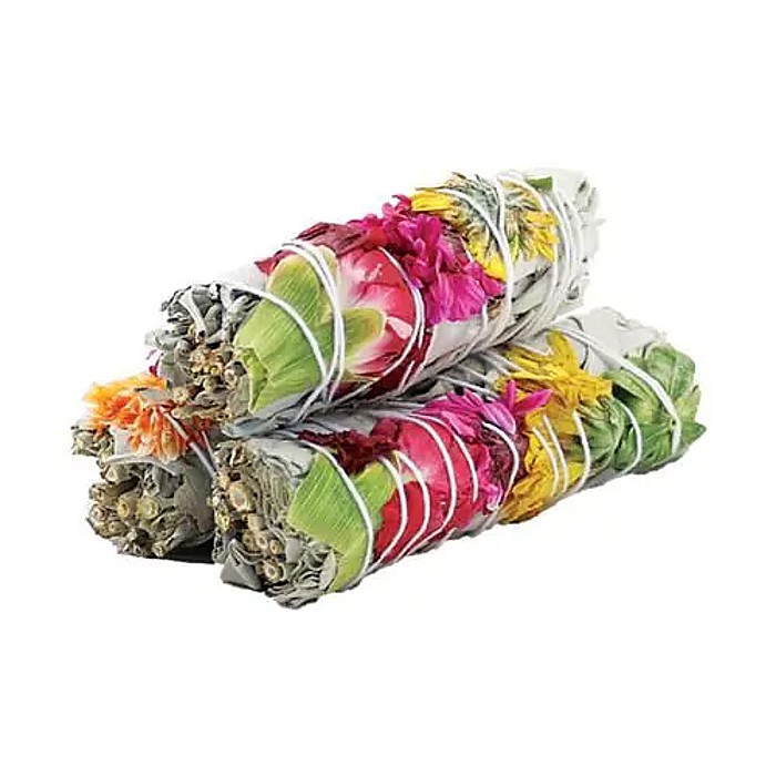 Fehér Zsálya Köteg Színes Virágokkal – „Native Joy” – 10 cm