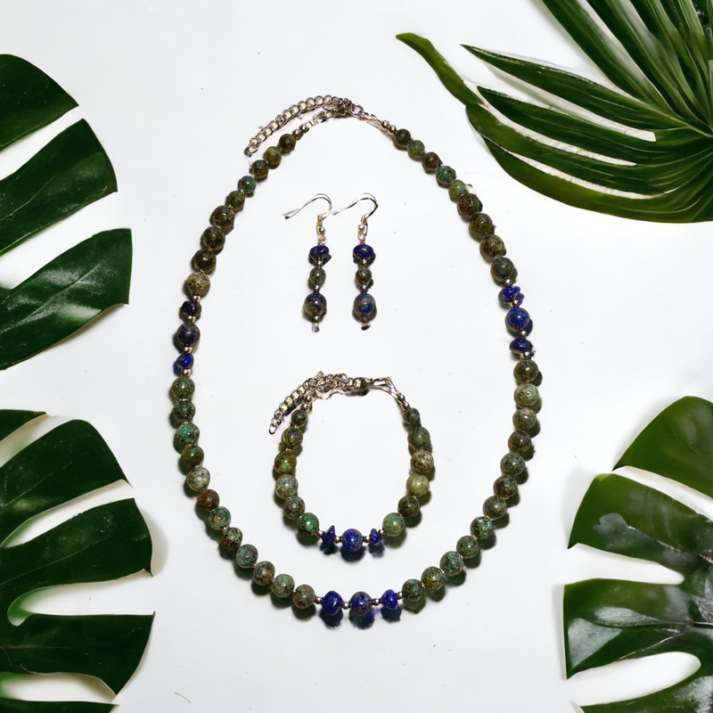 Gaia valódi türkiz ásvány ékszer szett – Samadhi Ékszer – Csiszolt valódi türkiz és lápisz lazuli kövekből készítve.