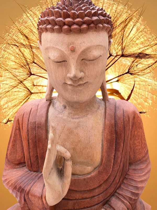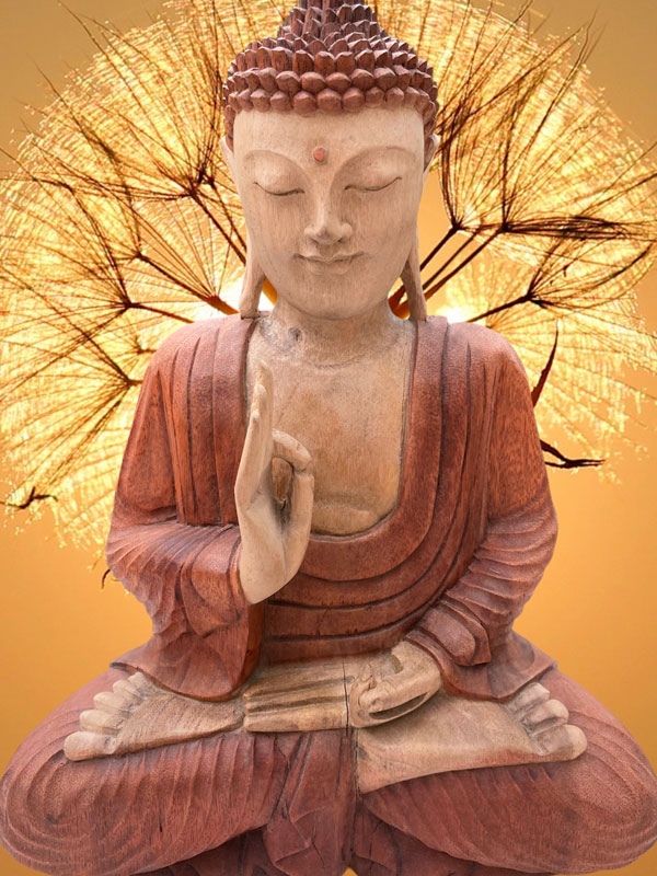 Prémium minőségű Buddha szobor tömör sámánfából faragva, gyönyörű kidolgozottsággal. Minőségi, nem könnyű trópusi fából készült, nagy méretű szobor.