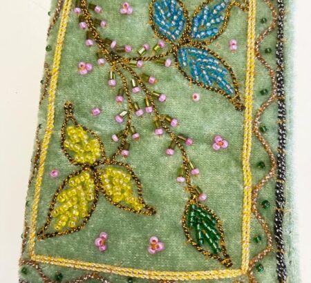 Burmai erszény tradicionális gyöngyhímzéses díszítéssel mindkét oldalán. Bársonyszövetből készült, 1 zippzáras nagy zsebbel.