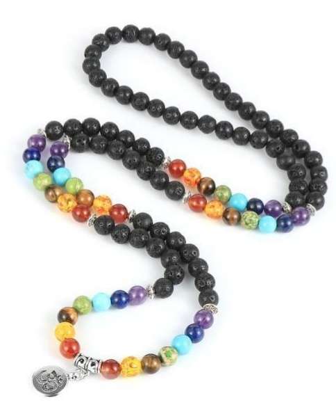 - Nyaklánc ásványai: Hét csakra ásványok, lávakő, osztókkal, OM szimbólum függővel