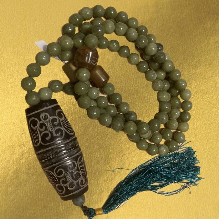Gyönyörű jáde mala jáde osztókkal. Normál, 8 mm-es a szemek átmérője. 108 szemes.