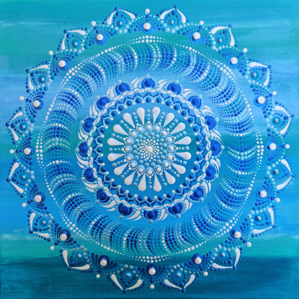 Technika: akril festék festővásznon, lakkal védve a mandalát, keretre feszítve.