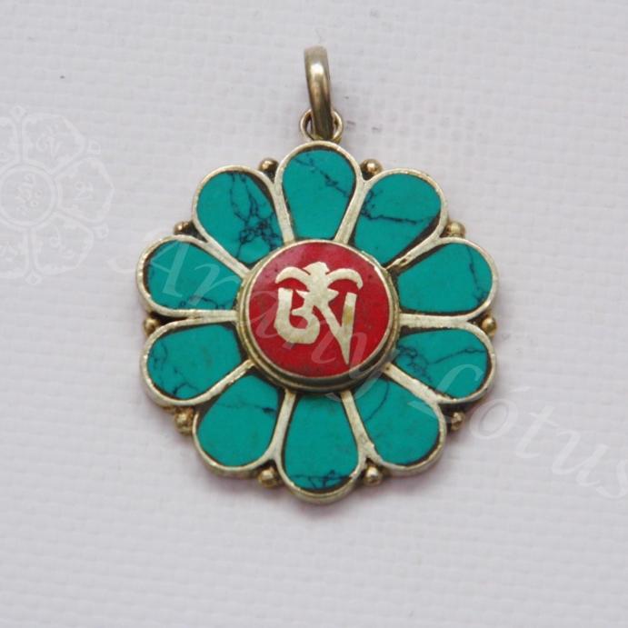 Lótusz alakú medál türkizzel berakva