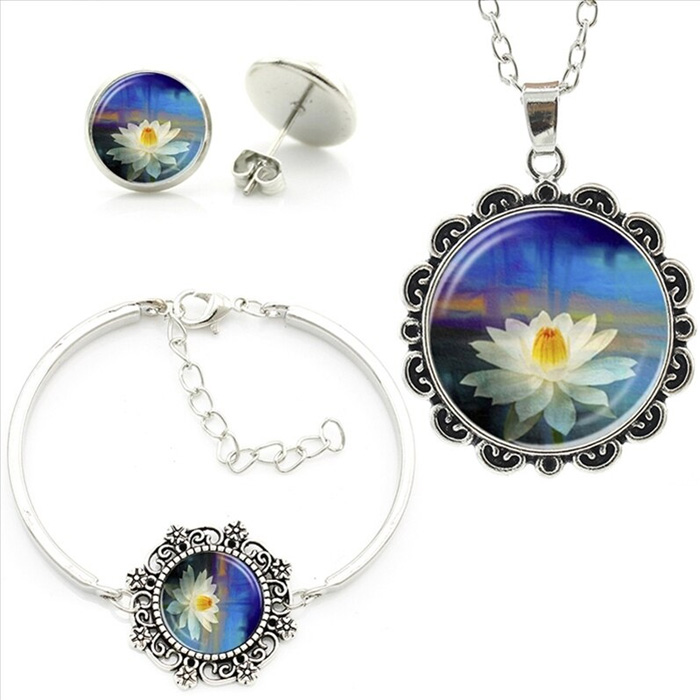 3 részes exkluzív megjelenésű üveg ékszer szett. Tartalma: 1 nyaklánc, 1 karkötő, 1 pár fülbevaló.