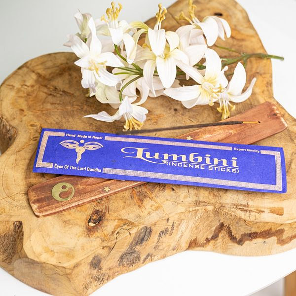 A Lumbini füstölő a tibeti hagyományok alapján, a Himalája környékének természetes összetevőit felhasználva készül. Az Lumbini illata különleges keveréke a fahéj, a gyömbér, a kardamom és más aromás fűszereknek. Az illat kellemesen édeskés és fűszeres, miközben friss és tiszta levegőt teremt a környezetben.