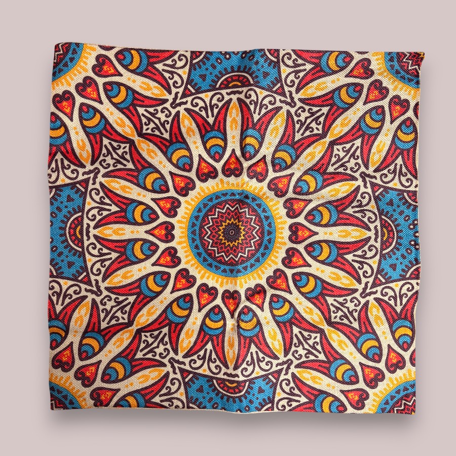 Mandala mintás párnahuzat, erős, strapabíró anyagból. Oldalán cipzárral van ellátva.