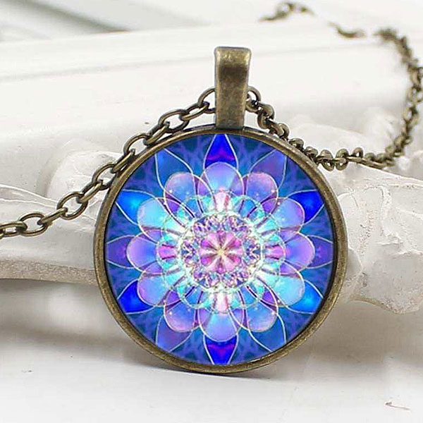 Mandala mintás üveg medál kapcsos nyaklánccal.