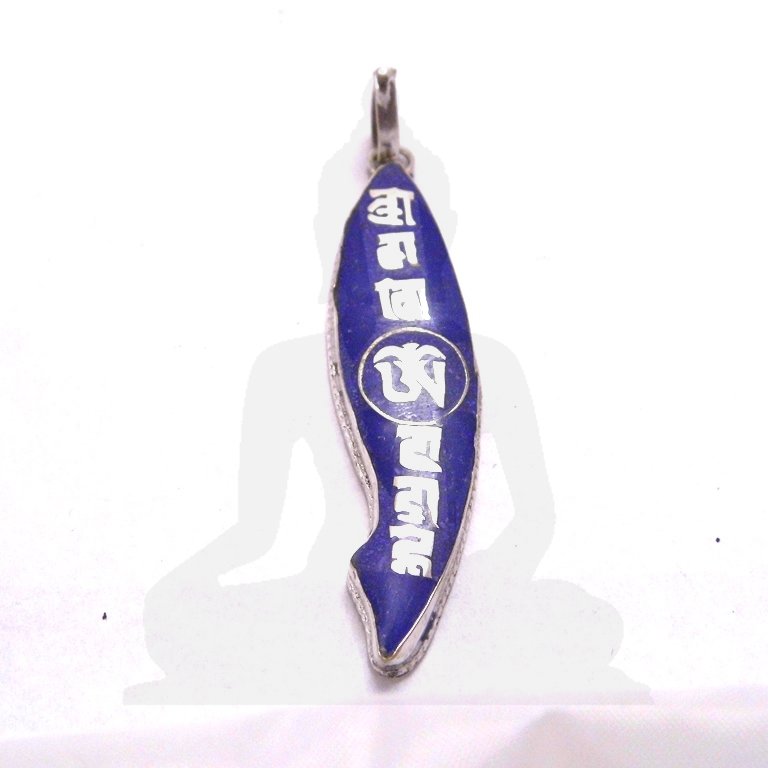 Lapis ásvány medál OM MANI PADME HUM mantrával díszítve.