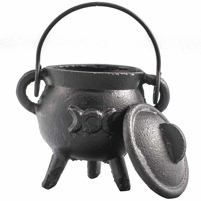 Öntöttvas égető üst fedővel, például zsálya, palo santo, vagy más füstölők égetéséhez. Használható különböző anyagok keverésére, vagy bármi egyébre is.