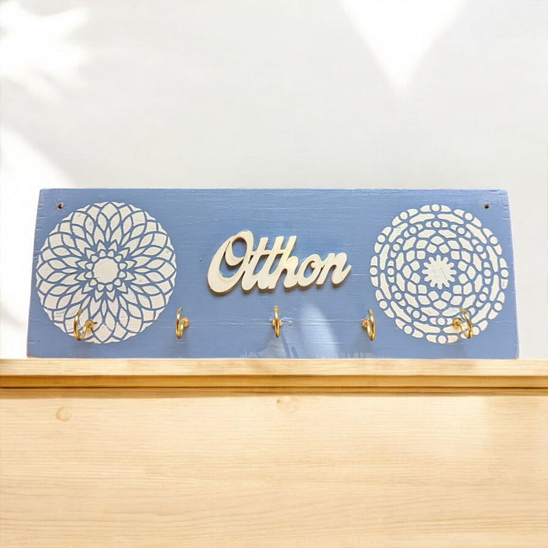 Otthon feliratos mandalás egyedi kézműves kulcstartós falikép