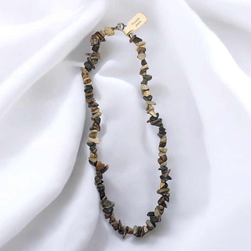 Picasso jáspis apróköves ásvány nyaklánc, kapoccsal ellátva.