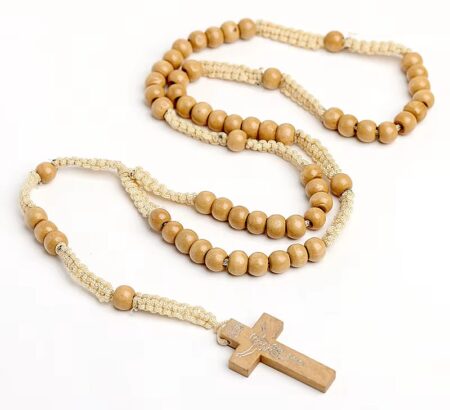 Hagyományos kialakítású keresztény rózsafüzér fából.