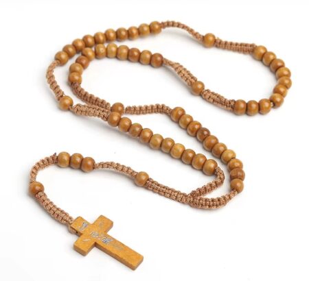 Hagyományos kialakítású keresztény rózsafüzér fából.