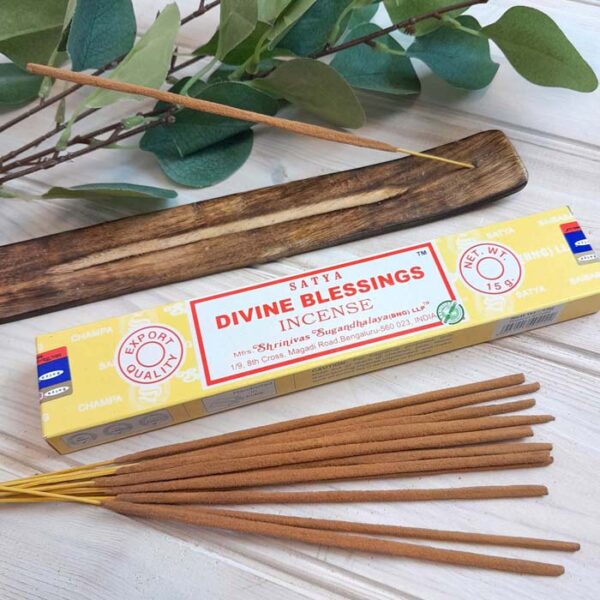 Satya Divine Blessings füstölő, egy csomag kiváló minőségű füstölő Indiából. 15 szálas kiszerelés.