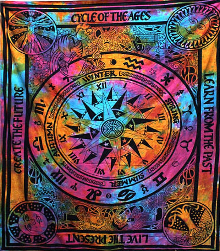 Szimpla méretű Időkerék mandala pamut ágytakaró faliszőnyeg