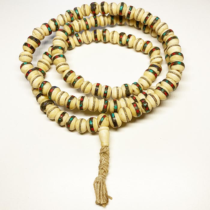 Gyönyörű csont mala Nepálból, 9 mm-es szemekkel, 108 szemes.