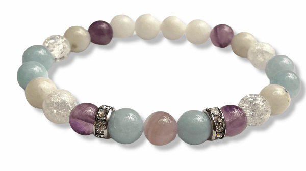- Karkötő ásványai: Ametisz, holdkő, akvamarin, roppantott hegyikristály, köves osztókkal.